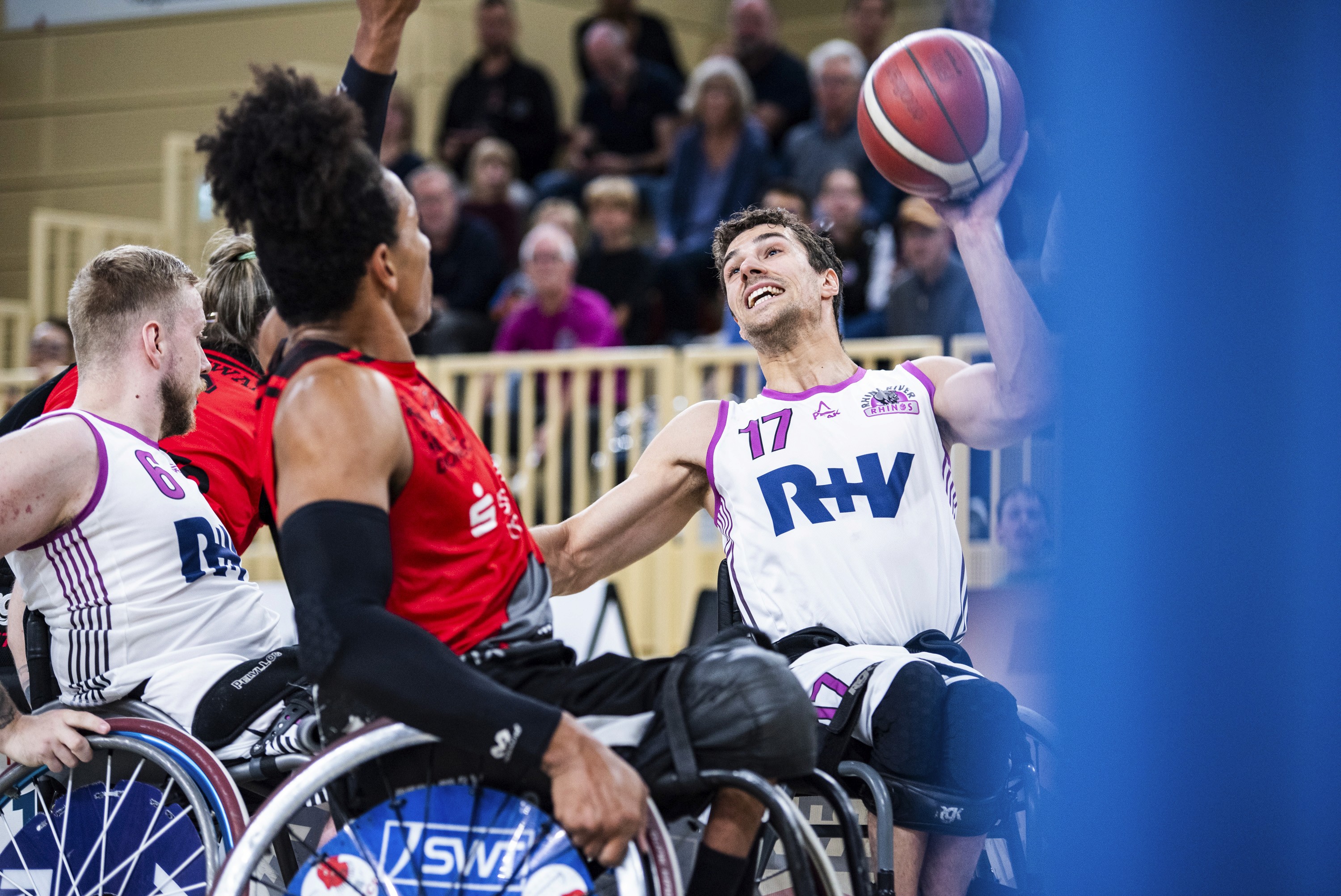 Wir sind die Rhine River Rhinos– ein Team, das mehr ist als Sport. Seit 2013 kämpfen wir auf und neben dem Spielfeld für Inklusion, Respekt und Zusammenhalt. Ob mit spektakulären Korbwürfen oder im Einsatz an Schulen: Unsere Energie überwindet Barrieren. Gemeinsam sind wir unaufhaltsam, weil wir an etwas Größeres glauben – an die Kraft, die entsteht, wenn jeder zählt.
